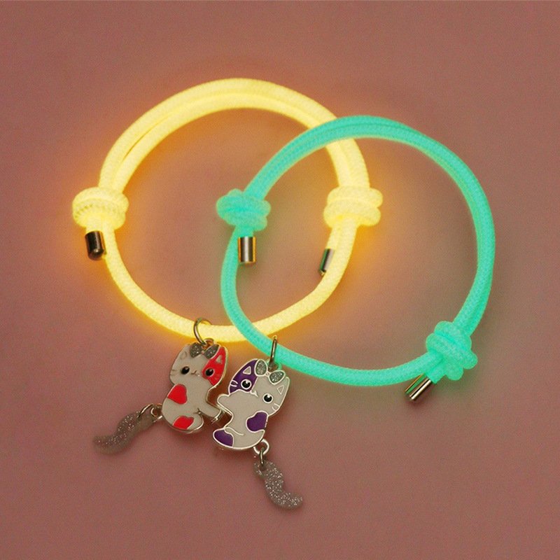 Glow in the Dark Two-pieces Cute Cat Magnetic Children’s Friendship Bracelets – Magical Light-Up BFF Jewelry